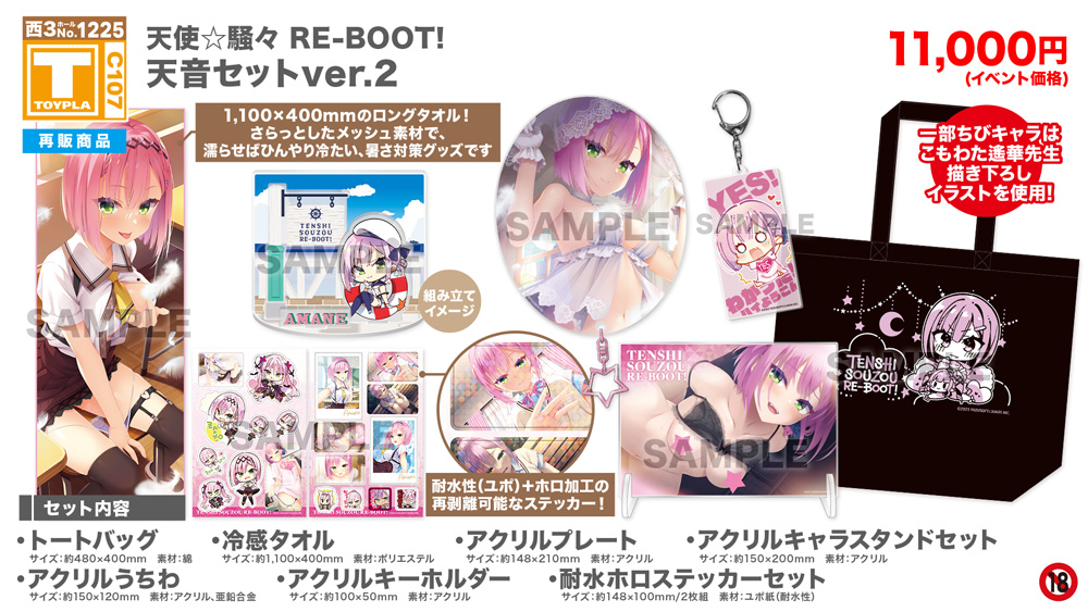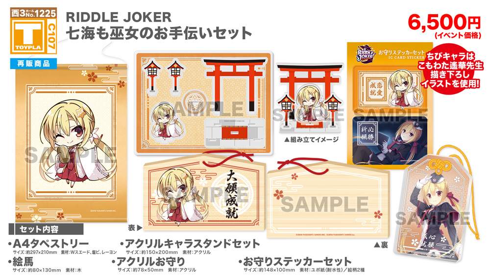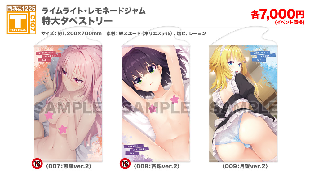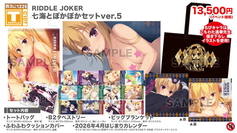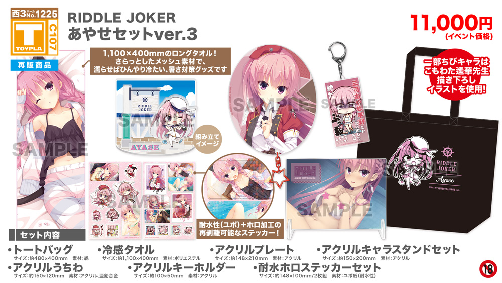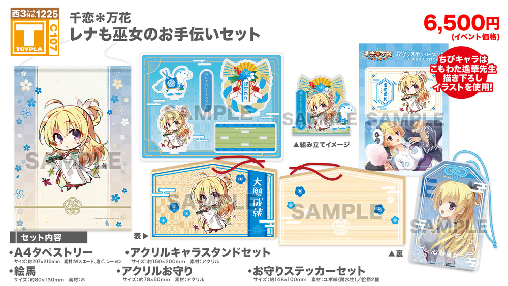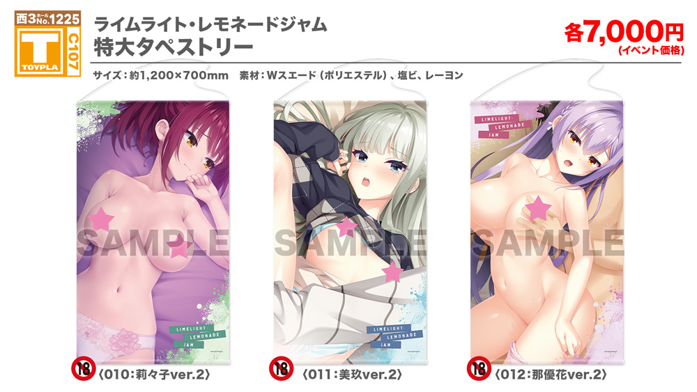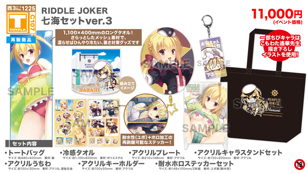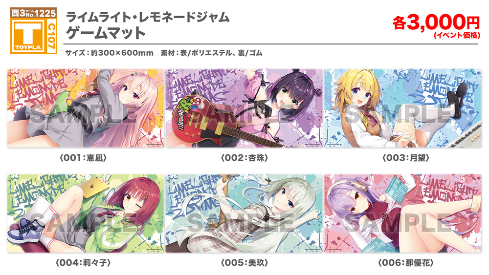 ・コミックマーケット公式サイト「コミックマーケット107のご案内・注意事項等」を必ずご一読ください。 ・徹夜を含む前日からの会場付近への来場は禁止されています。 ・公共の交通機関を利用して来場してください。 ・自家用車及びバイク、自転車などでの来場はできません。(会場・主催側では駐車場を用意しておりません) ・一般参加は、リストバンド型参加証の購入が必要です。 ・屋外、屋内では寒暖差がある事が予想されます。温度調節が可能な防寒具などの用意や対策をお願い致します。 ・雨天の場合でも、館外へ列形成をする場合がございます。 雨具をお持ち頂き各自で衣服や手荷物の防水対策をお願い致します。 ・混雑時は列の作成を一時停止または中止することがございます。中止・再開のアナウンスは@toypla_infoで行います。 |
