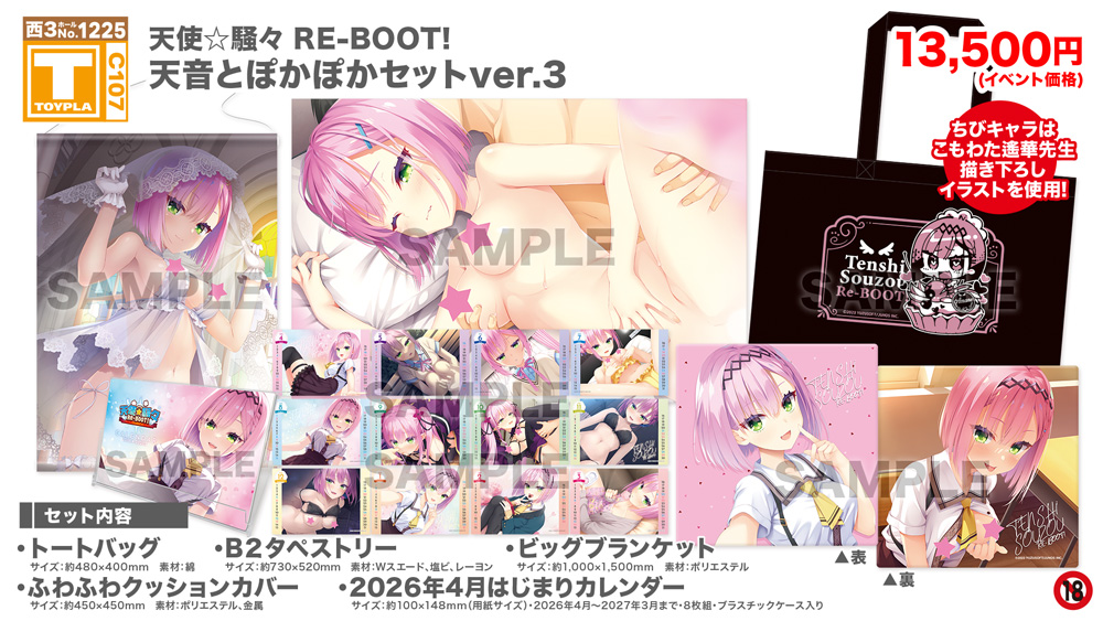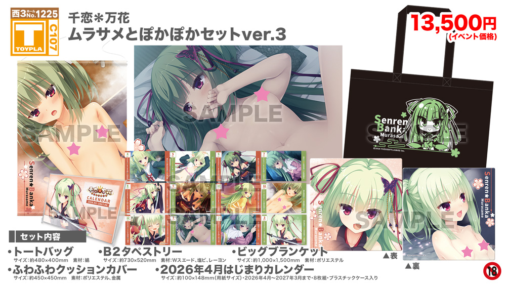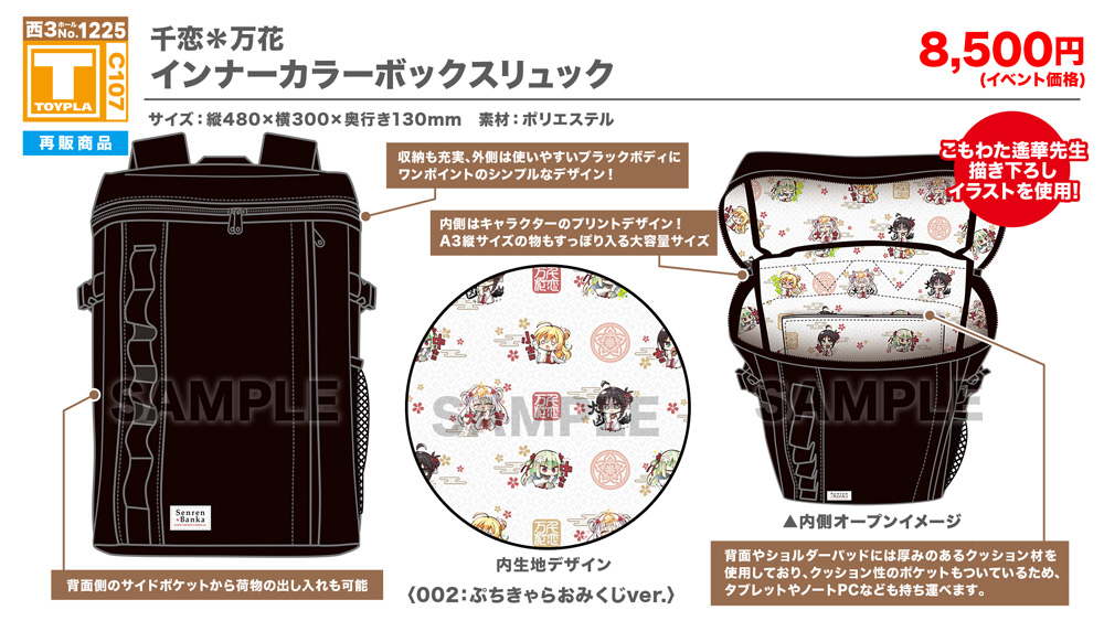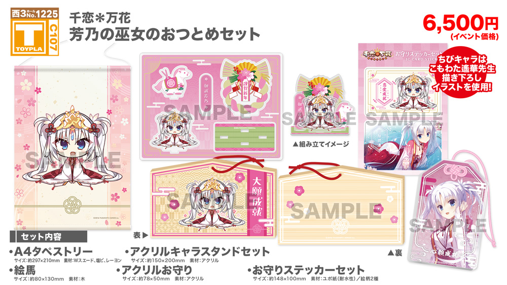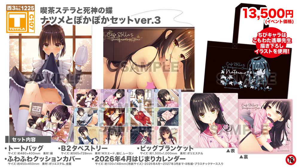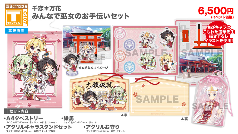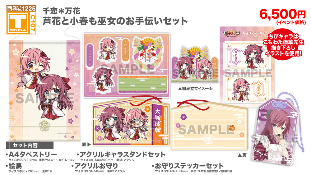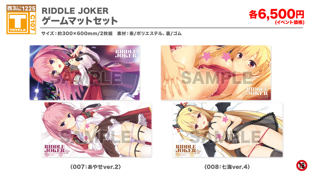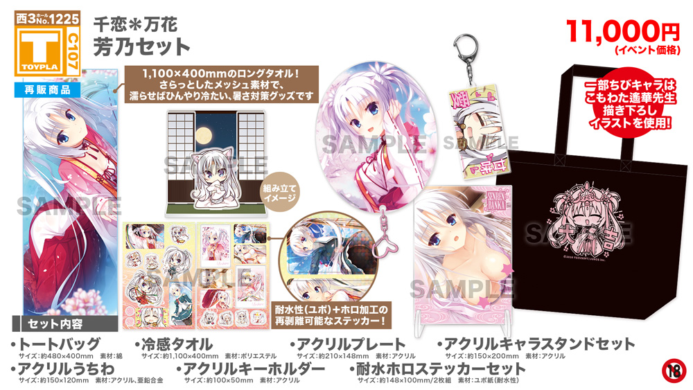 ・コミックマーケット公式サイト「コミックマーケット107のご案内・注意事項等」を必ずご一読ください。 ・徹夜を含む前日からの会場付近への来場は禁止されています。 ・公共の交通機関を利用して来場してください。 ・自家用車及びバイク、自転車などでの来場はできません。(会場・主催側では駐車場を用意しておりません) ・一般参加は、リストバンド型参加証の購入が必要です。 ・屋外、屋内では寒暖差がある事が予想されます。温度調節が可能な防寒具などの用意や対策をお願い致します。 ・雨天の場合でも、館外へ列形成をする場合がございます。 雨具をお持ち頂き各自で衣服や手荷物の防水対策をお願い致します。 ・混雑時は列の作成を一時停止または中止することがございます。中止・再開のアナウンスは@toypla_infoで行います。 |